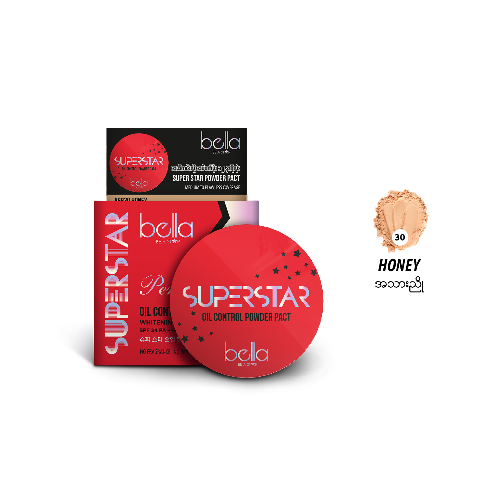 Super Oil Control အဆီထိန်းပေါင်ဒါဖြစ်တာကြောင့် တစ်နေကုန် အဆီပြန်ခြင်းကို ထိန်းထားပေးပြီး မိတ်ကပ်လုံး၀မကွက်တဲ့အပြင် မိတ်ကပ်ကို ပါးပါးလေးနဲ့ တစ်နေကုန်လှစေပါသည်။ အမဲစက် အရေးကြောင်းချွေးပေါက်ကျယ် အသားအရေ မညီညာတာတွေကို Super ဖုံးအုပ်ပေးနိုင်မယ့် Super Coverage ဖြစ်သည်။ Microporous Structure Powder ဖြစ်တာကြောင့် Super Lightweight နှင့် တစ်ထပ်တည်းကျပြီး Super Fit ဖြစ်လို့ မိတ်ကပ်လိမ်းထားမှန်းတောင် မသိသာပါဘူး .. နေရောင်ဒဏ်ကို ကာကွယ်ပေးမယ့် SPF 34 PA+++ Super Sun Proof ဖြစ်ပြီး Super Weather Proof, Sweat and Smudge Proof ဆိုတော့ ရာသီ အချိန်နေရာမရွေး ရေစို ချွေးစိုခံပြီး ပြည့်စုံလှပစေမယ့် Superstar Oil Control Powder Pact