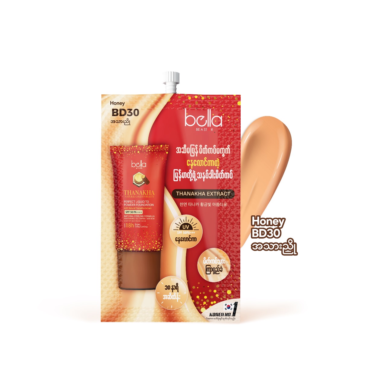 သနပ်ခါးဆိုတာ မြန်မာမိန်းကလေးတွေအားလုံးအတွက် မရှိမဖြစ် ရွှေရောင်ရတနာတစ်ပါးပါ။ ပူပြီး စိုစွတ်တဲ့ ရာသီဉတုမှာ သနပ်ခါးလေးလိမ်းလိုက်ရင် အေးမြသွားပါတယ်။ အရည်ကနေ ပေါင်ဒါဖြစ်သွားလို့ အဆီပြန်ခြင်းကိုလည်း ထိန်းပေးပါတယ်။ SPF 50 PA+++ ပါဝင်တာကြောင့် နေရောင်ဒဏ်ကို အပြည့်အဝကာကွယ်ပေးပြီး ဝက်ခြံများကိုလည်းသက်သာစေပါတယ်။ သနပ်ခါးရဲ့ အဆီအနှစ်တွေက အသားရောင်ကို ညီညာစေပြီး ပိုဝင်းသွားစေပါတဘ်။ တစ်နေကုန်ခံတဲ့အပြင် ရေစို ချွေးစိုခံတာကြောင့် မြန်မာ့မိန်းကလေးတိုင်းရဲ့ လိုအပ်တာတွေကို ပေးနိုင်တဲ့ bella ရဲ့ သနပ်ခါးကို မြန်မာမိန်းကလေးတိုင်း တန်ဖိုးထားကြတာဖြစ်ပါတယ်။