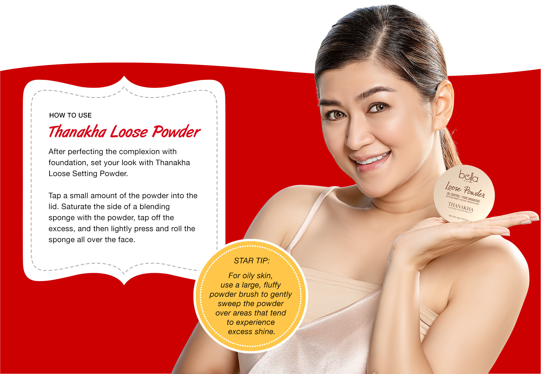 • Thanakha Loose Mineral Powder weightlessly locks in make-up for perfect long-lasting wear with a flawless, pore-less finish creating a modern, velvety matte look with a touch of sheer coverage, while Natural Thanakha essence absorbs excess oil allowing you to be Selfie Perfect and HD ready all day. Enhanced with Micro Blurring Technology, this silky, non-drying powder creates ???????a flawless matte finish by softly diffusing pores and made up of a complexion boosting blend of mattifying particles to help eliminate shine and prevent flashback. Thanakha Mineral Loose Powder can be used to set under-eye concealers, brighten dark circles and diminish skins of visible fine lines and wrinkles. formulated for all skin tones, this unique translucent shade works on everybody from the fairest to the deepest.