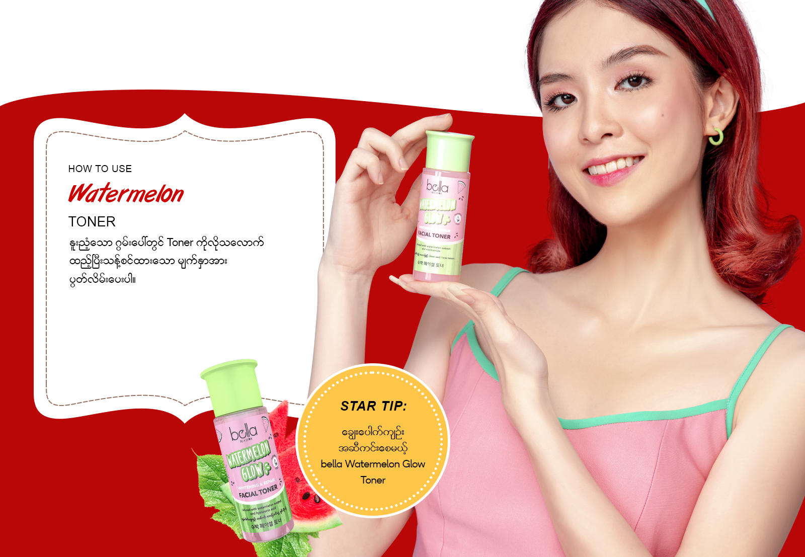 ချွေးပေါက်တွေကျဥ်း အဆီကင်း Bella Watermelon Glow Toner