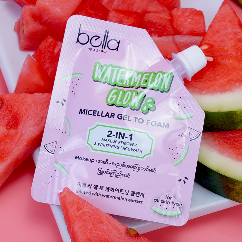 This 2-in-1 micellar gel makeup remover-cleanser gives you the delicious deep clean you deserve: when activated with water, the unique micellar dual texture transforms into big-soft foamy bubbles to deeply clean the skin. What it does: • Micellar gel effectively removes long-wear makeup, plus oil, dirt, and pollution. • The innovative formula transforms from a thick gel to a gentle foaming lather and won’t strip skin or dry you out. • Purifies pores and helps fight shine long after you’ve rinsed it off. • Watermelon extract provides anti-oxidant power to fight off acne, while its anti-inflammatory effect calms and soothes skin. • Vitamin C works to lighten dark spots and brighten the complexion while controlling oil secretions. • Smells like juicy Watermelons but contains only 0.2% fragrance (We formulate using the minimum amount of fragrance, when needed, to create a sensorial, enjoyable skincare experience).Standard Size - Net Wt. 35g / 75g